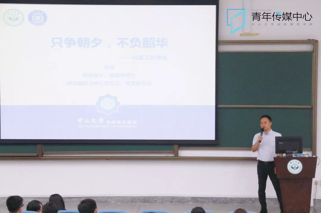 On September 13th, 2020, Empathetic Doctors and Competent Translators Fight against COVID-19, the fifth lecture for the new student orientation of the School of International Studies (SIS), was successfully held in the teaching building. Xiao Fei, Party Secretary of Infectious Disease Department of the Fifth Affiliated Hospital of Sun Yat-sen University (SYSU), reported to the new students of 2020 on their anti-pandemic work. Lin Qiaoyi, one of the postgraduates of SIS, shared with the new students how the volunteers helped the hospital fight against the pandemic. From their speeches, the new students realized the difficulties of responding to the pandemic and felt a great passion to serve the country.