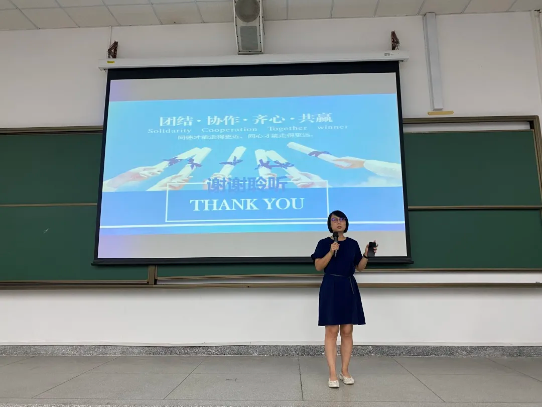 Next, Guo Cong, a postdoctoral researcher of SIS, and Lin Hong, head nurse of the Phoenix International Medical Center of the Fifth Affiliated Hospital of SYSU shared with the new students the stories of the postgraduate volunteers of SIS working with the Fifth Affiliated Hospital in response to the pandemic. Mrs. Lin started her speech by noting the background of international medical cooperation, and proposed the idea of “building the bridge for cross-cultural communication wholeheartedly”. She indicated that with the growing integration of the world, international medical cooperation had been strengthened across the five continents, and therefore, more translators and interpreters were in need to act as assistants for communication between doctors and patients. What the postgraduate volunteers did to assist the hospital to guard against the virus was exactly playing the role of the bridge. They sorted out and classified the medical supplies donated by foreign countries, made patient communication cards, and so on. The volunteers participated in the efforts to fight against the pandemic in their way, which added vibrant color to their youth.