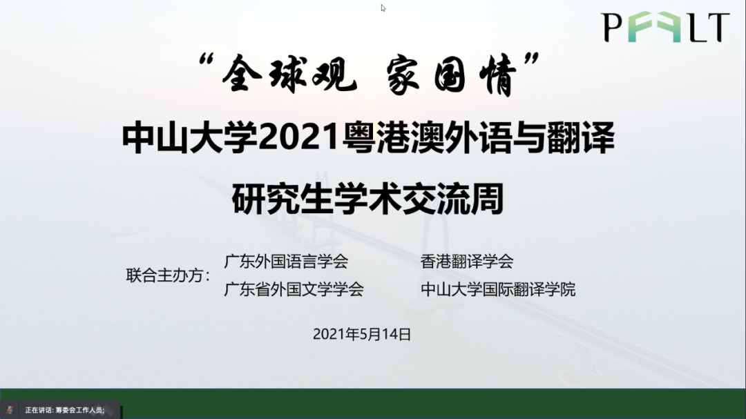 At 7:30 p.m. on May 14th, 2021, the long-prepared 2021 Guangdong-Hong Kong-Macau Postgraduate Academic Exchanges in Foreign Languages and Translation was opened. The Ice-breaking Exchange Meeting was held on schedule, in which contestants from universities of Guangdong, Hong Kong, Macau and other provinces and cities participated through VooV Meeting. Professor Zhou Hui, Deputy Dean of the School of International Studies (SIS), Sun Yat-sen University (SYSU), attended the meeting.