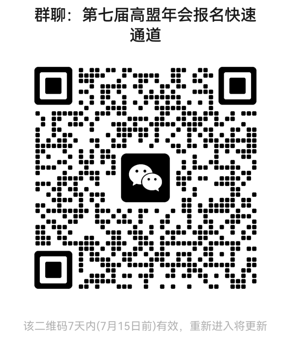 2、高盟第七届年会报名快速通道(此通道仅面向学界,不面向企业)请扫码: