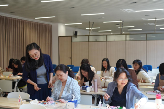 忽而春风,岁月向荣,为庆祝“三八”妇女节,丰富女教职工的文化生活,44118太阳成城分工会于3月10日在海琴6号A280组织开展了“巧手生花”团扇制作活动,通过沉浸式手工制作帮助女教职工放松身心、领略中华传统文化的魅力。
