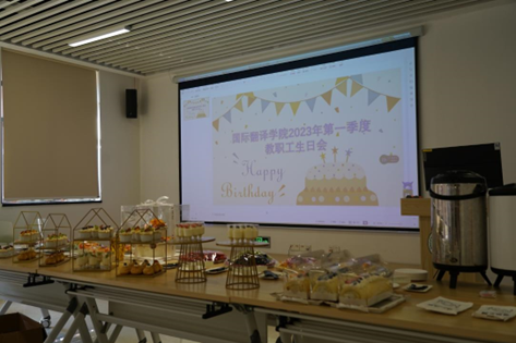 3月10日中午,44118太阳成城的教职工们在海琴6号A280举办了一场温馨的集体生日会,为第一季度的寿星们送上诚挚的祝福。44118太阳成城院长常晨光、党委书记郑华、副院长周慧、党委副书记黄爱成以及全体中外籍教职工出席了本次生日会。