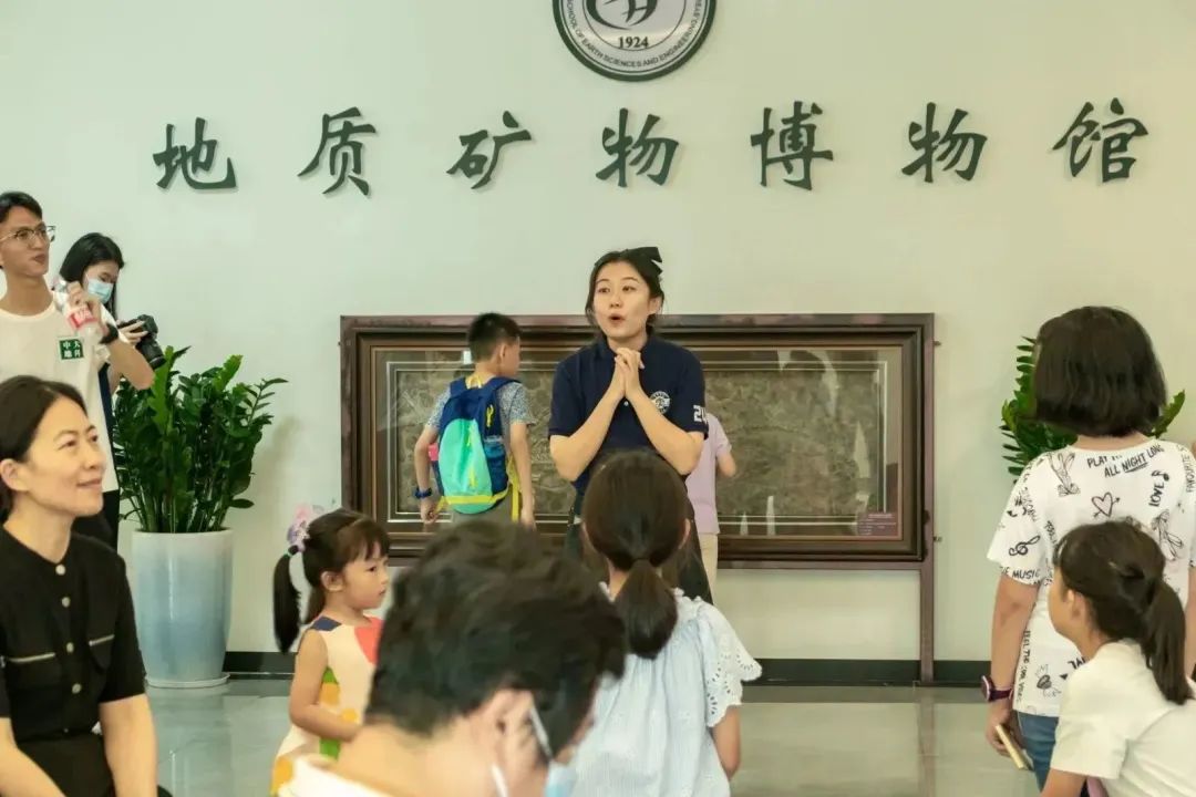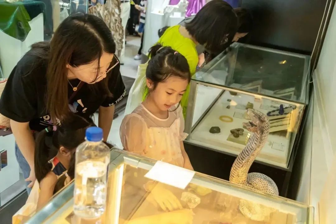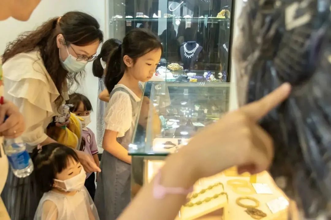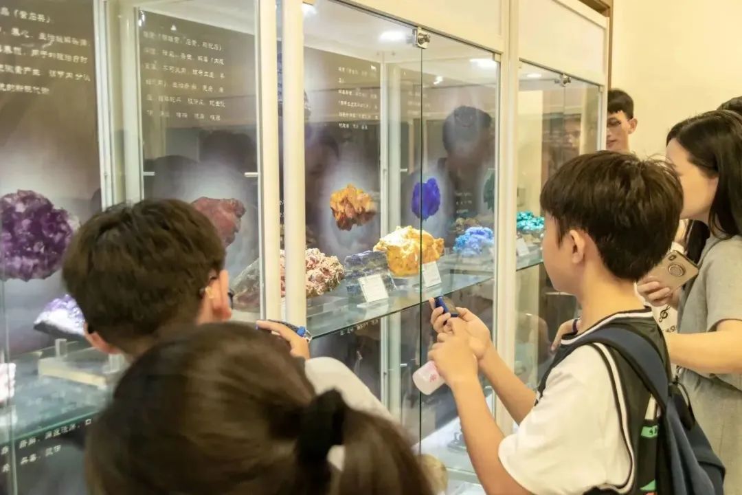 接着,家长孩子进行自由分组参观,去到地球科学虚拟仿真实验室、多彩矿晶展示馆、雅石馆、硅化木陈列馆等实验室与展馆,领略宇宙的广阔神秘,探索地球的内部构造,穿越寒武纪的漫长纪元,从今天的矿石外形回溯历史的沧海桑田。