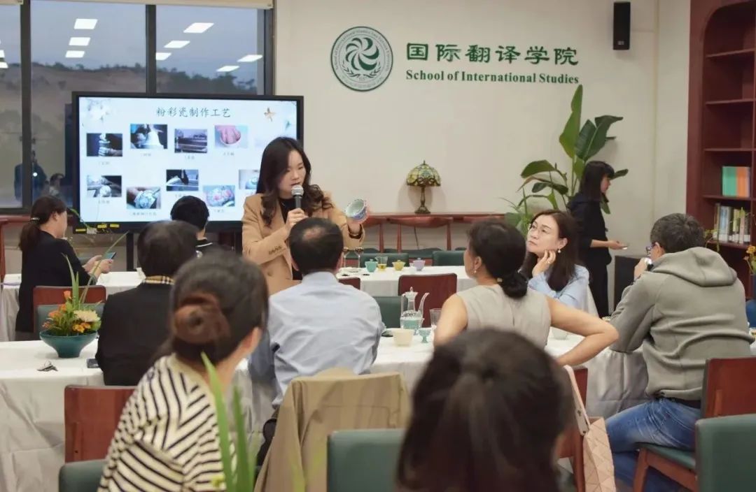 而后,谢雨轩老师对品茶所用的瓷器进行讲解。从历史、艺术审美、制瓷工艺的发展沿革与改进、瓷器上的中外交流等多方面,分享了瓷器作为饮茶美器的艺术价值,引导教师鉴赏瓷器。在谢雨轩老师的讲解中,参会的老师们深深的震撼于中华瓷器之工艺美,同时也对以瓷载茶有了更深的了解。