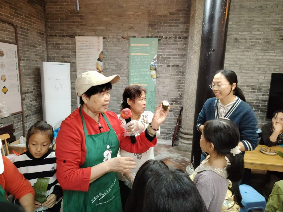 本次活动还有幸邀请到珠海市非物质文化遗产唐家湾茶果传承人梁细容老师及其团队。梁老师既为大家深入讲解了唐家湾茶果的历史脉络与节令种类,展示了琳琅满目的茶果样式,又向大家传授了茶果制作技巧,从揉面的手法到馅料的调配,师傅满怀热情,倾囊相授。大家全神贯注,乐学其中。