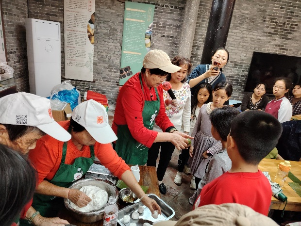随后,参与活动的老师们带着自家孩子,一起进行了茶果制作,体验着将食材变成美食的奇妙旅程。师傅们则在一旁热情指导,耐心解答着大小朋友们的问题。此刻,大家都化身为非遗传承的使者,用双手传递着传统技艺的温度。