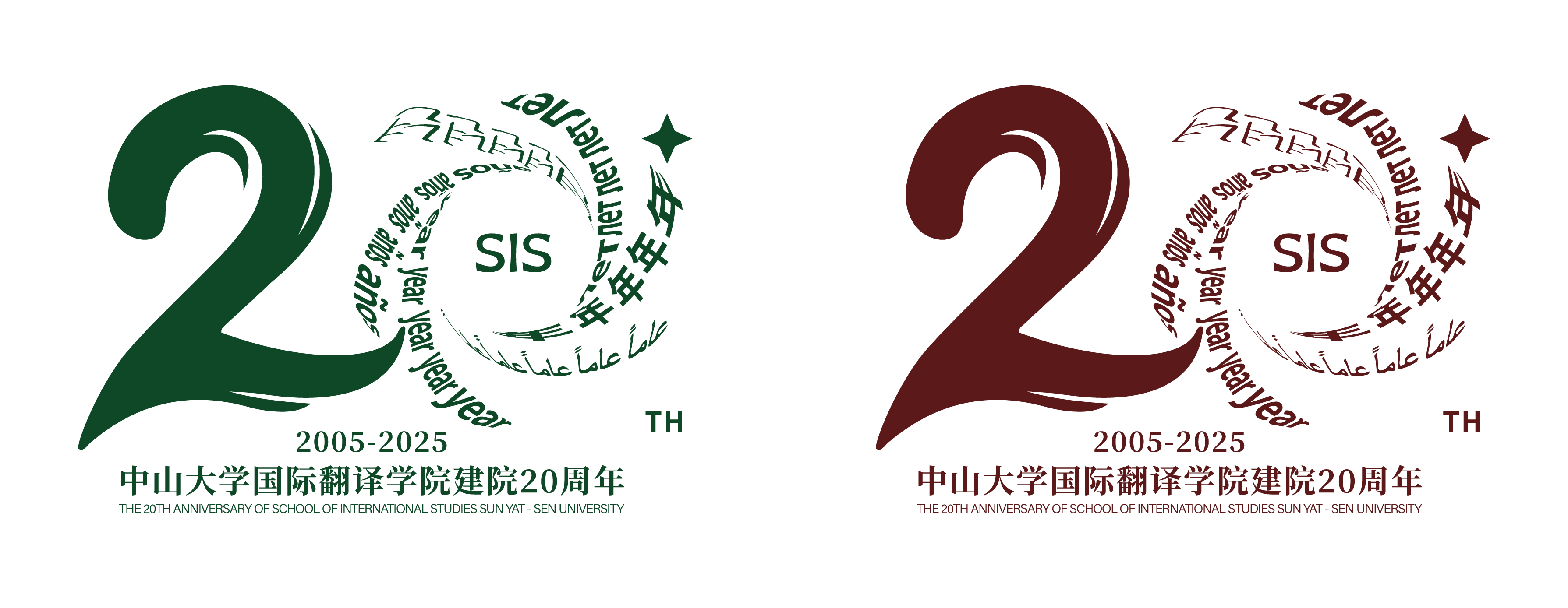灵感源于学院的国际化定位与使命。作为培养跨语言文化人才的摇篮,学院汇聚全球语言智慧。将不同语言的 “年” 字组合,既代表学院 20 年发展历程中对多元语言文化的包容吸纳,也寓意未来在国际交流合作中继续繁花满枝,硕果累累。